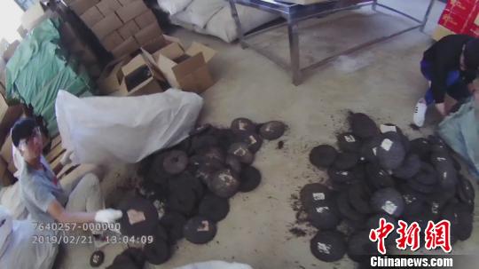 图为堆在地上的假冒普洱茶饼。(供图上海长宁警方)