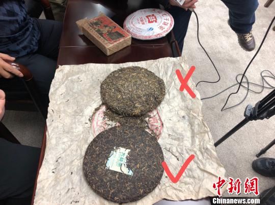 图为真假茶饼对比。(供图上海长宁警方)