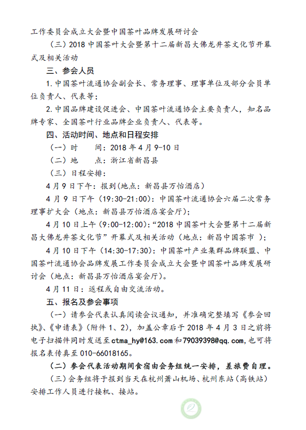 关于召开中国茶叶产业集群品牌联盟、中国茶叶流通协会品牌发展工作委员会成立大会及协会