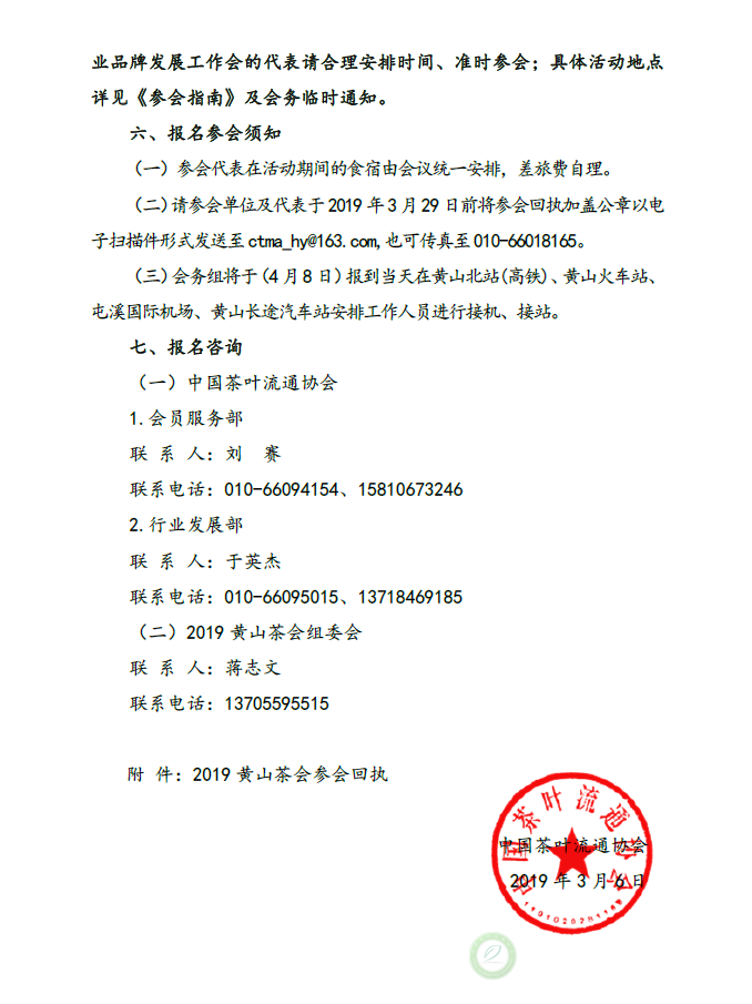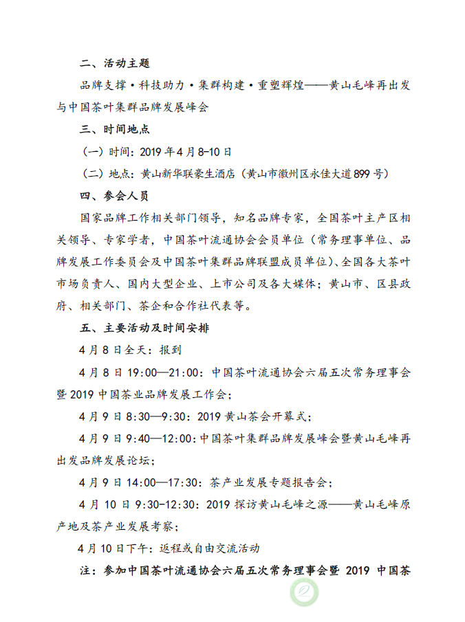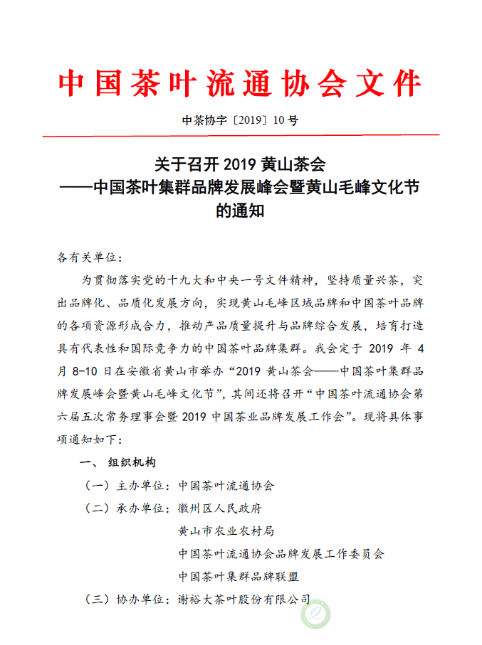 关于召开2019黄山茶会 ——中国茶叶集群品牌发展峰会暨黄山毛峰文化节的通知