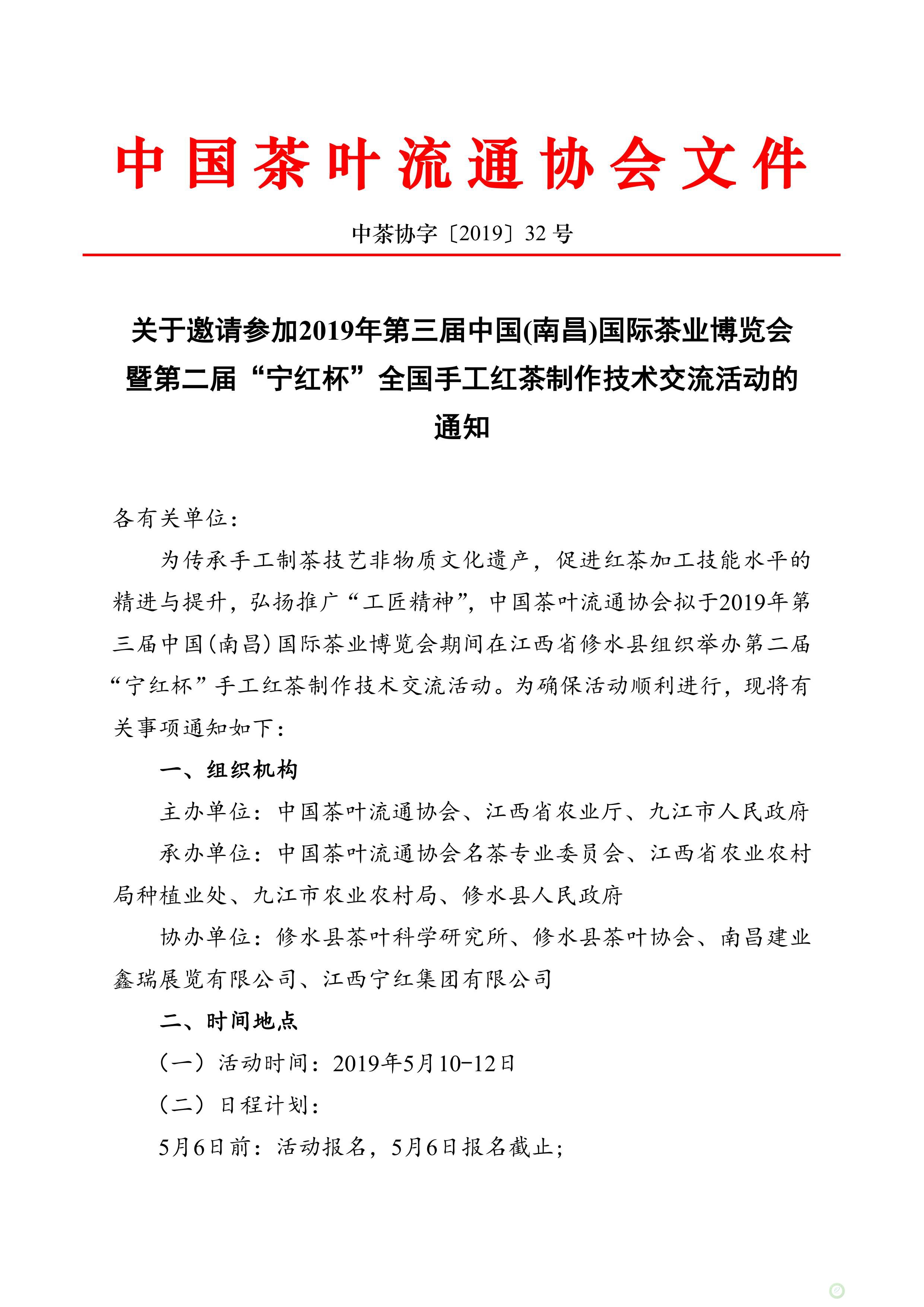 关于邀请参加第二届“宁红杯”全国手工红茶制作技术交流活动的通知