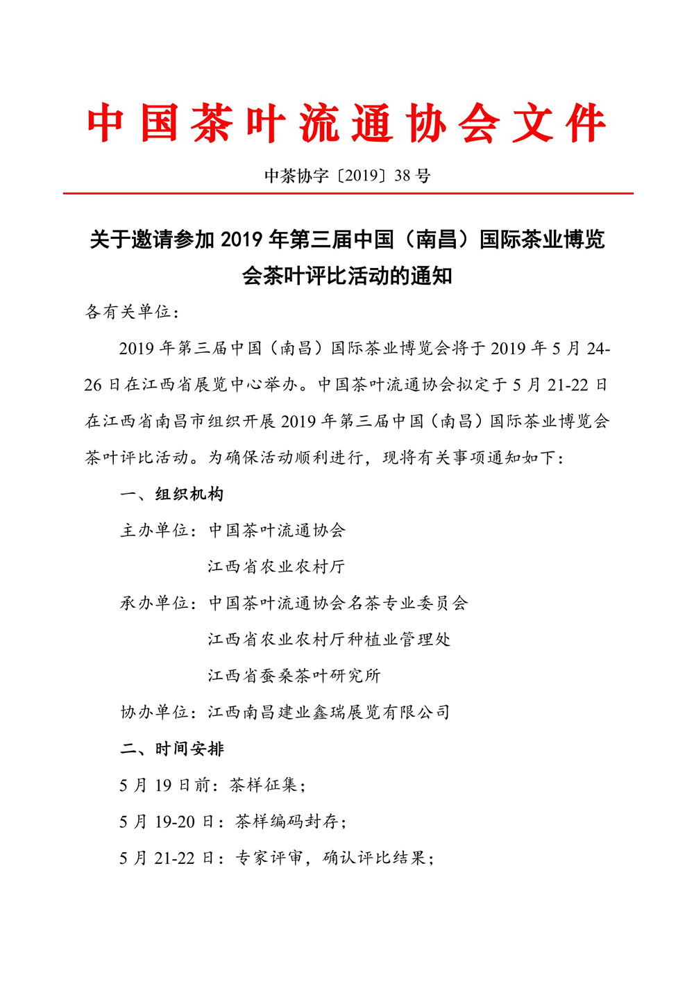 关于邀请参加2019年第三届中国(南昌)国际茶业博览会茶叶评比活动的通知