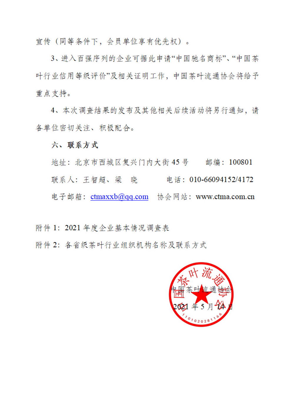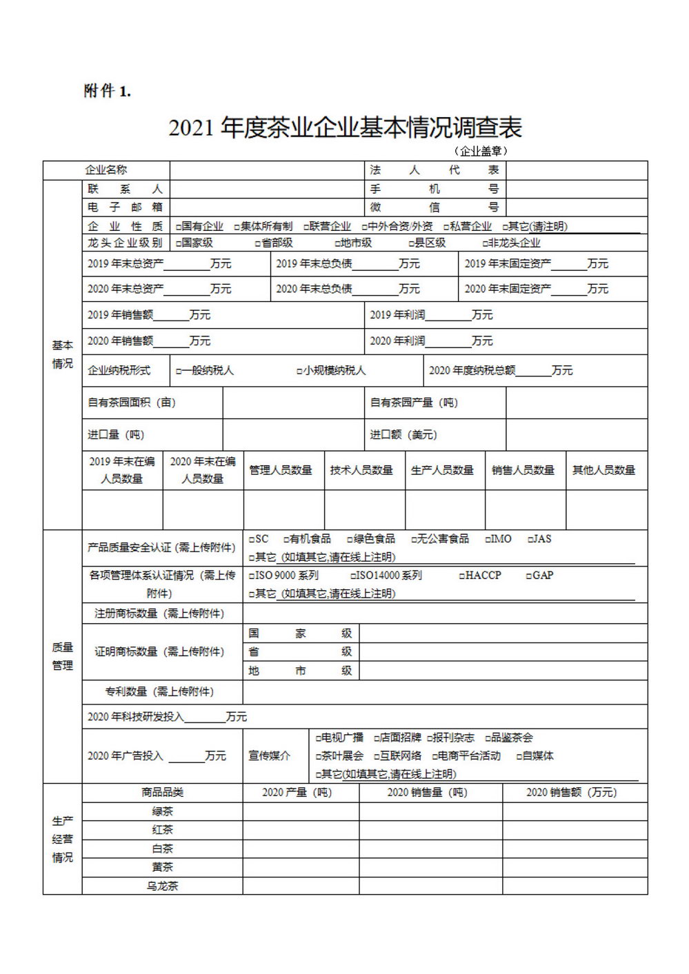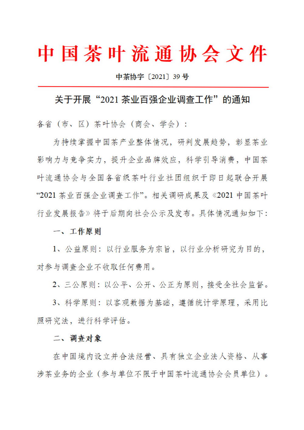关于开展“2021茶业百强县基本情况调查工作”的通知