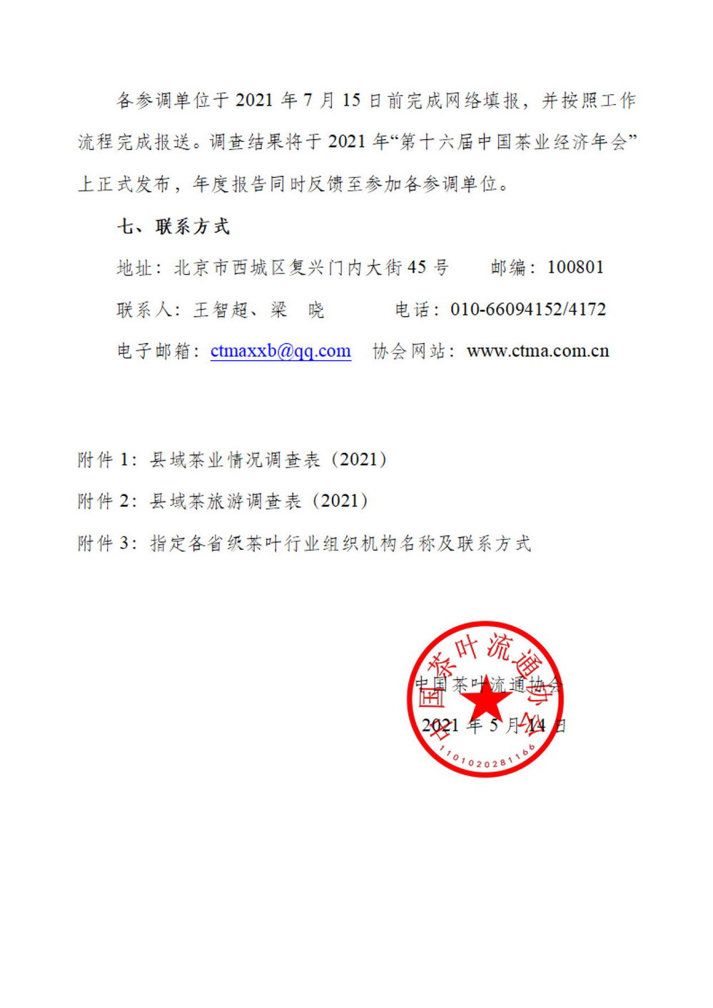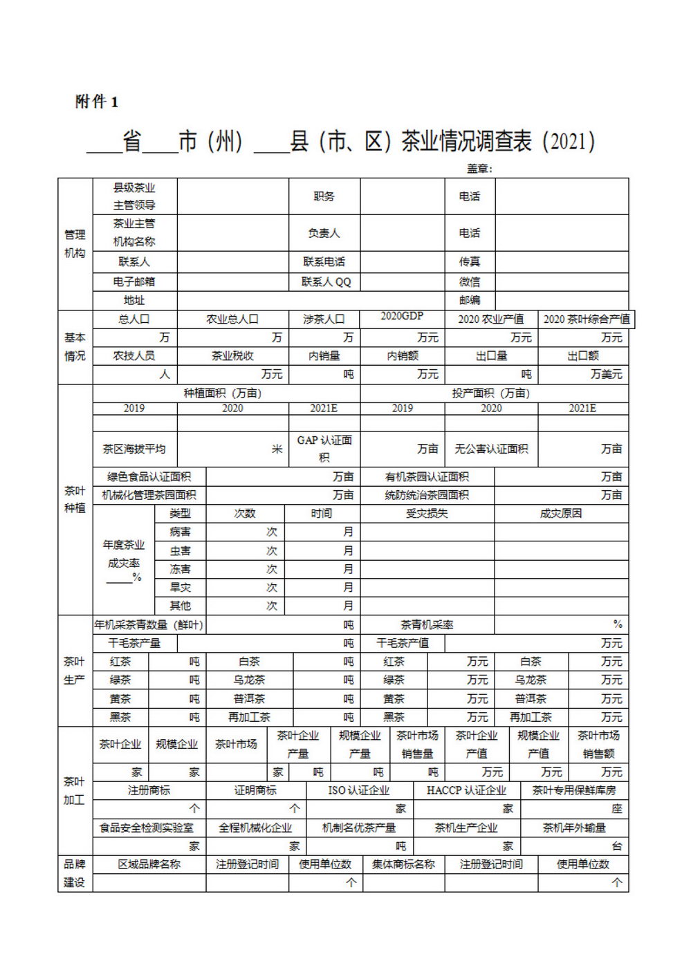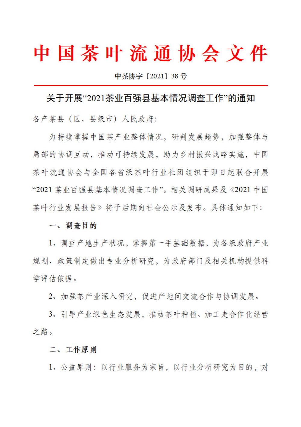 关于开展“2021茶业百强县基本情况调查工作”的通知