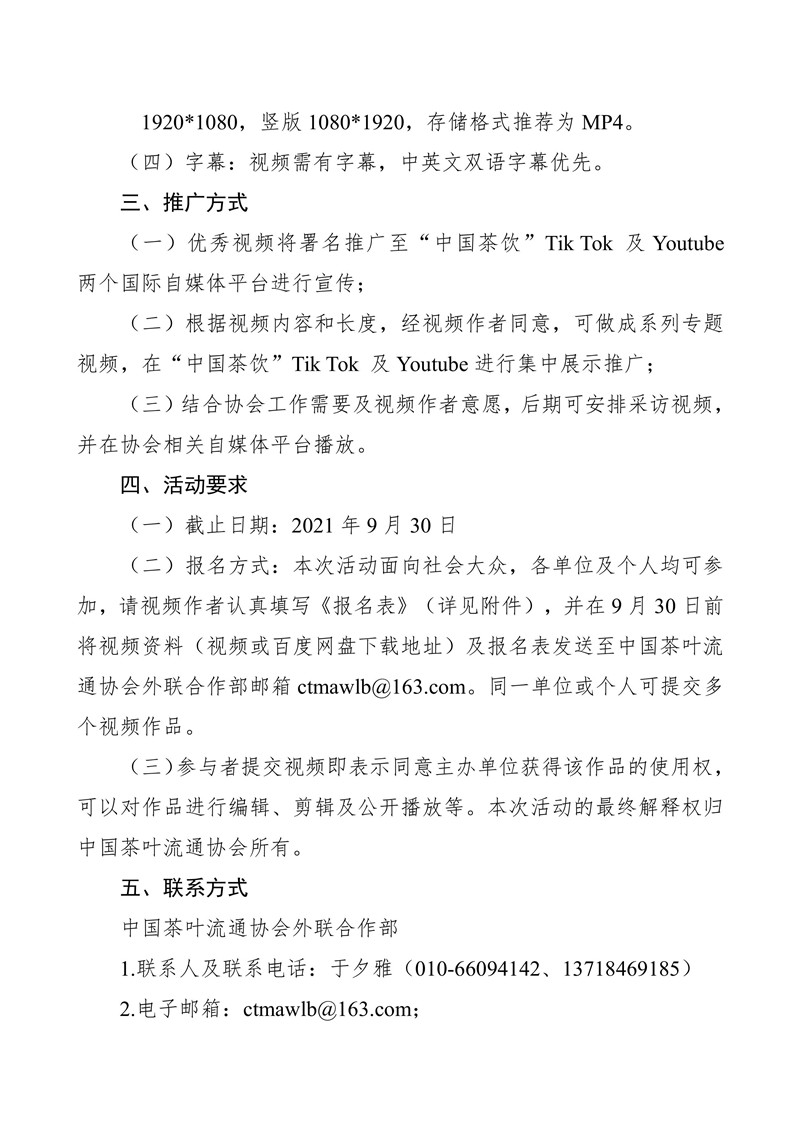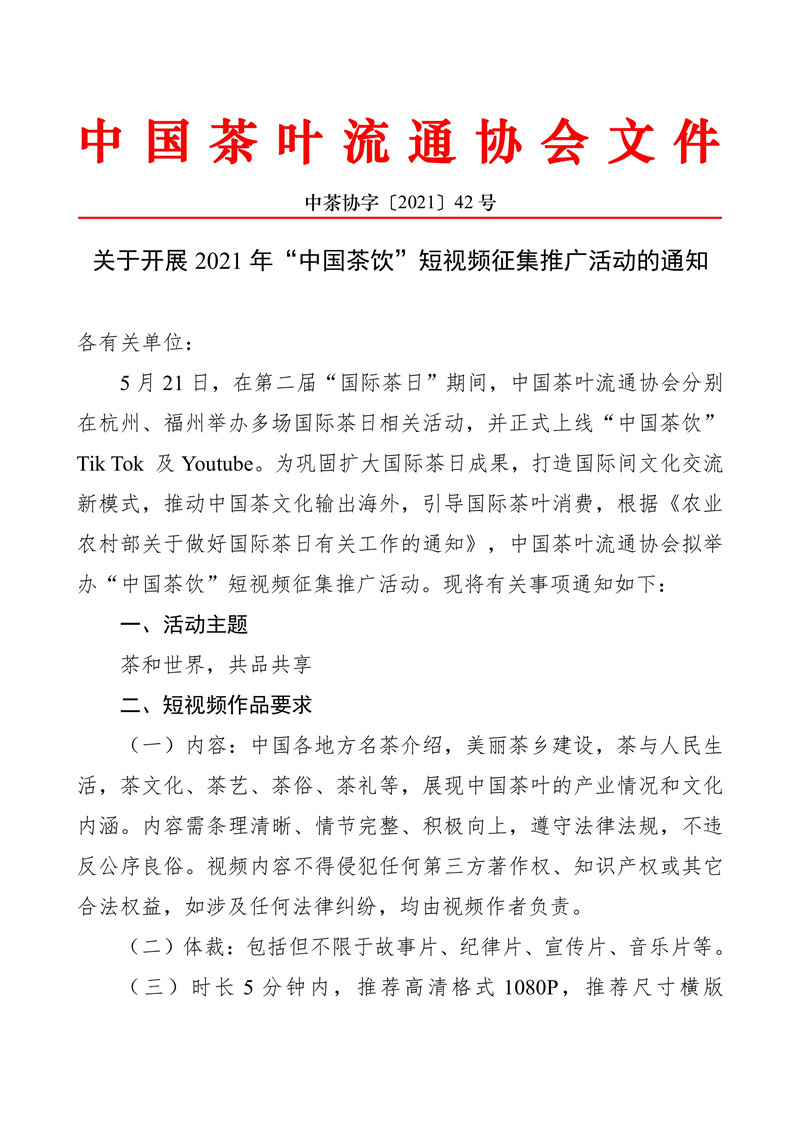 关于开展2021年“中国茶饮”短视频征集推广活动的通知