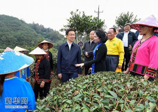 在五指山椰仙有机茶生态观光园,韩正了解高山雨林有机茶种植等特色产业培育、病虫害物理防治、种植产业和旅游产业融合发展等情况,与正在茶园工作的当地农民和贫困户交流。韩正指出,要充分发挥海南地理条件和生态系统的独特优势,挖掘生态保护蕴含的经济价值,大力发展绿色生态产业,推动农民增收致富。