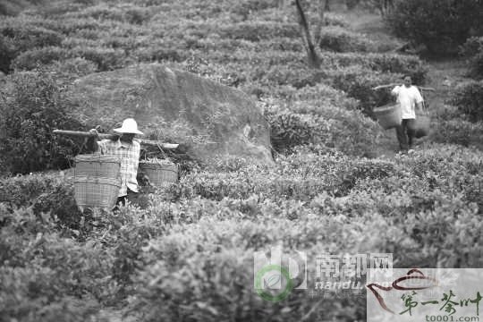 古兜山茶场,茶农担着刚采下的嫩绿春茶,信步飞奔。