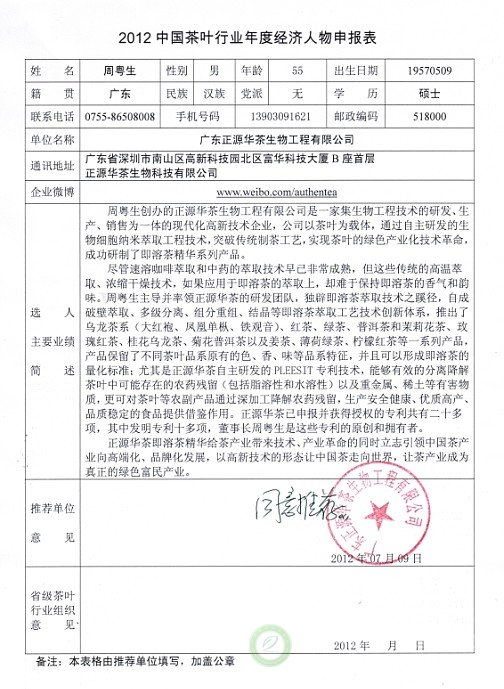 2012中国茶叶行业年度经济人物候选人:周粤生