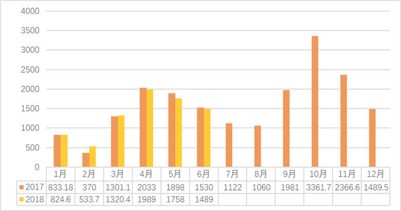 2017-2018(6月)安溪中国茶都铁观音交易量(吨)