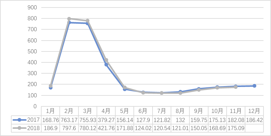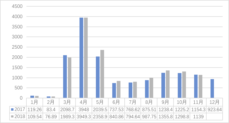 2017-2018(11月)新昌中国茶市交易量(吨)