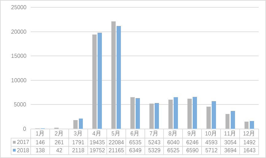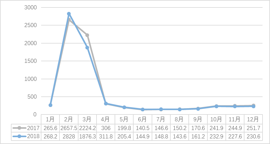2017-2018(12月)浙南茶叶市场交易量(吨)