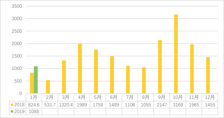 2018-2019(1月)安溪中国茶都铁观音交易量(吨)