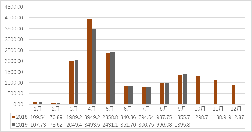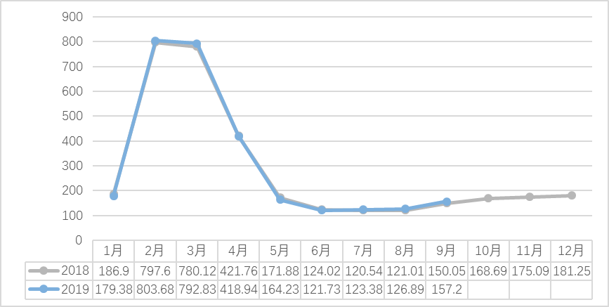 2018-2019(9月)新昌中国茶市交易量(吨)