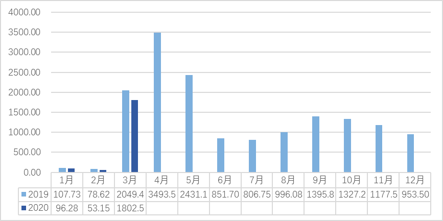 三月本是市场进入交易繁忙的季节,但今年受新冠肺炎疫情的影响,外地采摘工不能按期前来,虽然较大规模茶园的茶企用专车到河南等地接来采摘工,但茶叶采摘还是受到了一定的影响;另今年的天气气温偏低,茶树催芽缓慢,也使今年三月的春茶产量减少。三月统计显示,今年三月的交易量为1802540公斤,比去年同期2049476公斤减少了391450公斤,减少了12.05%。交易量的减少,使得三月交易额减少了19577.15万元。