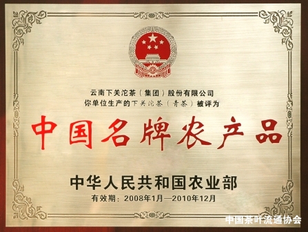 数十年如一日地恪守诚信,始终如一地追求卓越。下关沱茶在屡获国家银质奖、世界食品金冠奖、获国家质监总局“地理地标志产品保护”、“中国茶叶名牌”等殊荣之后,近年来“松鹤”商标、“宝焰牌” 商标先后两次获“云南省著名商标”; 下关沱茶又荣获国家农业部的“中国名牌农产品”荣誉。