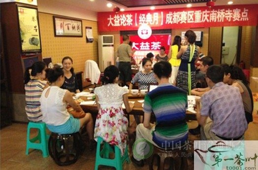 成都赛区在重庆设有7个赛点,重庆福渝茶行南桥寺店首先拉开比赛帷幕。赛前精心布置的比赛横幅、X展架、茶品、泡茶器具、摇号箱、答题卡、茶点等为比赛的顺利进行提供了有力保障。20余名参赛选手极其认真,通过看干茶、品茶汤、观叶底来判断每个茶品的唛号,甚至有的选手还拿出手机的手电筒仔细对比各款产品的特点,反复论证自己的答案。经过3个多小时的激烈角逐,裁判长公布正确答案及最高分获得者。赛后,选手们纷纷表示:“大益应该多开展此类活动,不但可以品到大益不同配方不同风格的产品,也可以检验检验自己喝茶几年的舌头。”