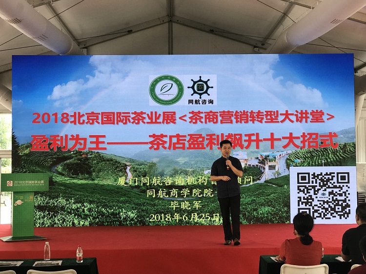 厦门同航咨询机构首席顾问毕晓军老师、惠量文化谢晶老师时隔两年再次空降北京国际茶业展舞台,为大家带来了《盈利为王——茶店盈利飙升十大招式》、《茶文化空间的“盈利机遇”》两场精彩的营销讲座。两位老师分别就茶店盈利招式、茶店投资-销售-费用-利润的商业逻辑、茶店亏损原因、茶文化空间盈利模式等茶行业营销的热点问题进行了深度解析,赢得了现场听众的热烈掌声和强烈共鸣,现场气氛爆棚!