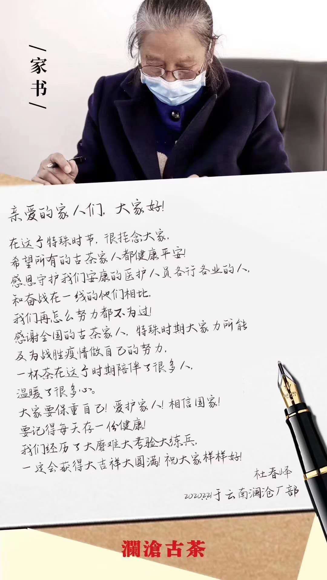 这封家书,给古茶家人带去了慰藉和鼓励,那一句句温暖朴实的话语,如三月的春风,瞬间融化了古茶家人心中的焦虑,给予了大家继续前行的动力。茶妈妈用她的细腻与贴心,将这份抗疫情怀落实到每一个细节,让全国古茶家人感受到了希望,看见了曙光。