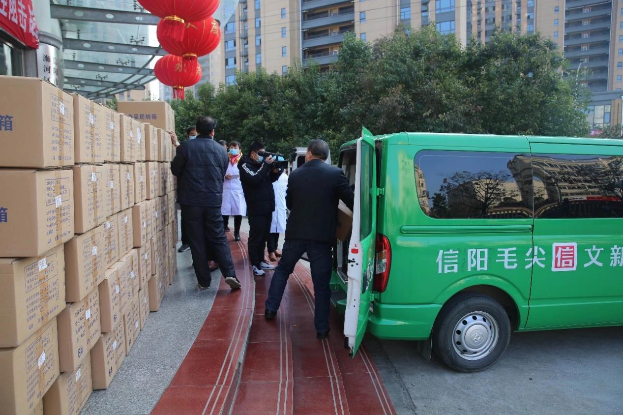 2月11日,刘文新得知一线基层疫情防控值守人员24小时在站点设岗执勤非常辛苦,他从公司紧急调配60箱茶食品捐赠到浉河区卫健委,保证抗疫一线值班人员的食物供给……就这样,全国疫情暴发以来,刘文新带领文新茶叶公司第一时间响应,连续五次深入抗疫一线捐款捐物,每一次刘文新都是亲自跟车,确保捐赠防疫物资安全、高效地送到抗疫一线。