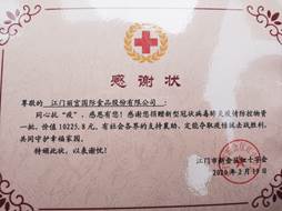 新会陈皮作为广东十大道地药材之一,被纳入新型冠状病毒肺炎预防方案,对预防疫情有着一定的作用。除此之外,侨宝还捐献超1万的物资到新会红十字会,共同助力抗击疫情。