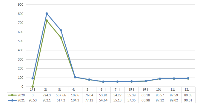 2020-2021(1月-12月)浙南茶叶市场交易量(吨)