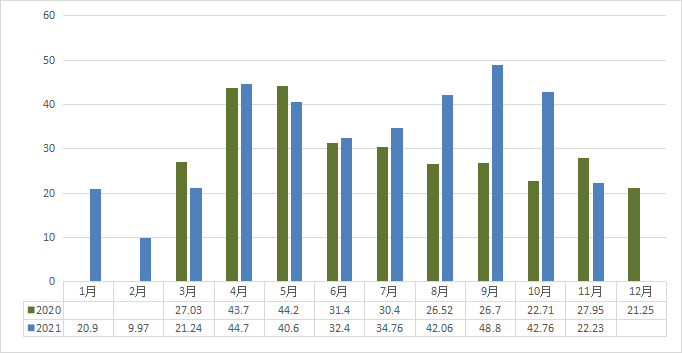 2020-2021(1月-12月)中国茶叶指数之地方名茶指数——松阳绿茶