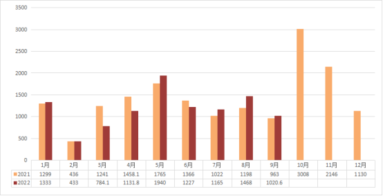 2021-2022(9月)安溪中国茶都铁观音交易量(吨)