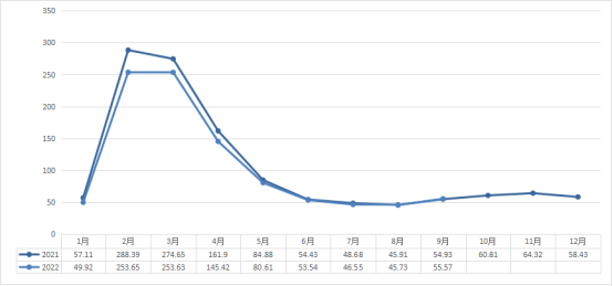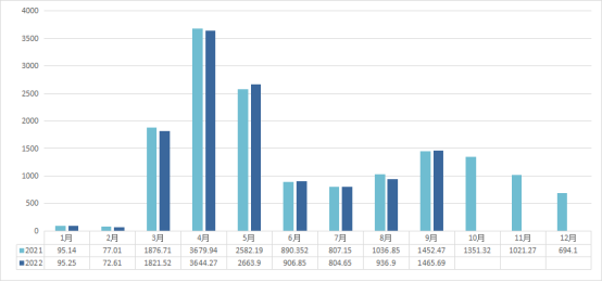 2021-2022(9月)新昌中国茶市交易量(吨)