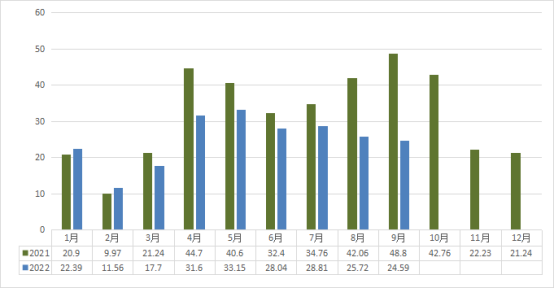 2021-2022(9月)信阳毛尖指数信息采集合作单位市场交易量(吨)