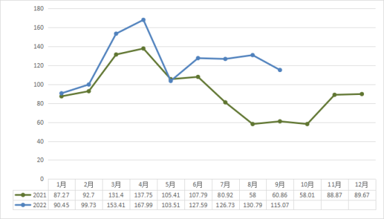 2021-2022(9月)中国茶业指数之地方名茶指数——信阳毛尖