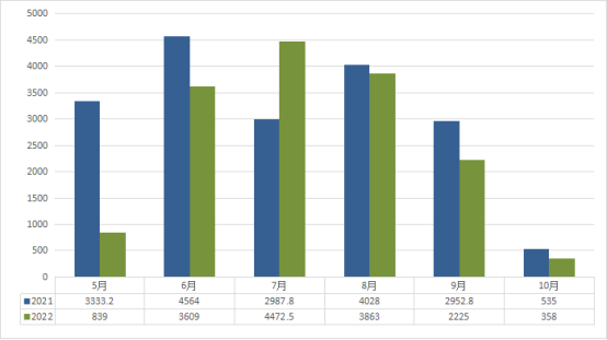 2022年9月横州茉茉莉花的交易量对比去年同期减少25%。原因是:今年9月份干旱,导致茉莉花根系枯萎,出花率也就减少,茉莉花交易量也随之减少。