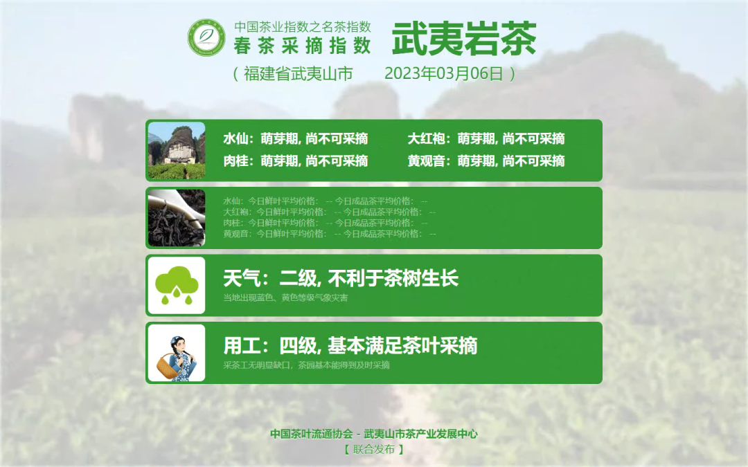 敬请持续关注中国茶叶流通协会官网及微信公众号,获取2023春茶采摘指数每日最新变化。