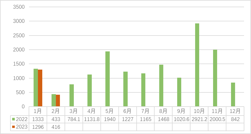 2022-2023(2月)安溪中国茶都铁观音交易量(吨)