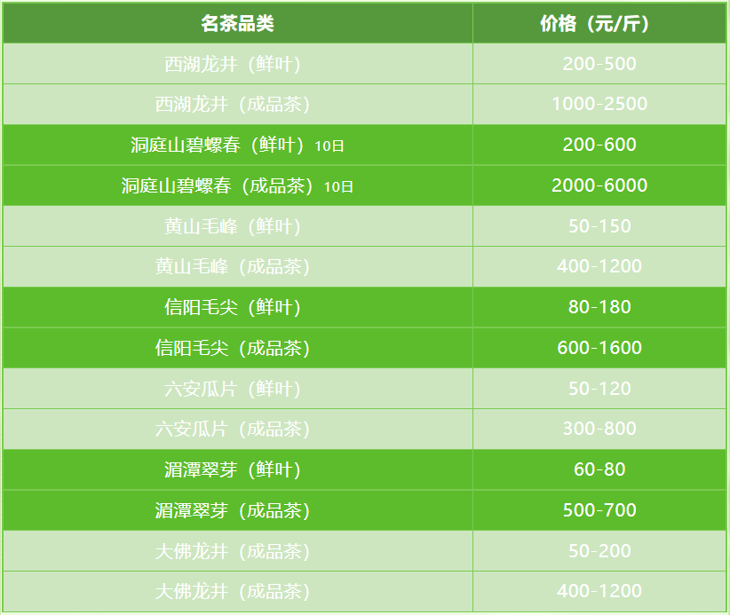 已开采名茶(注:品质按一级标准)今日参考价格: