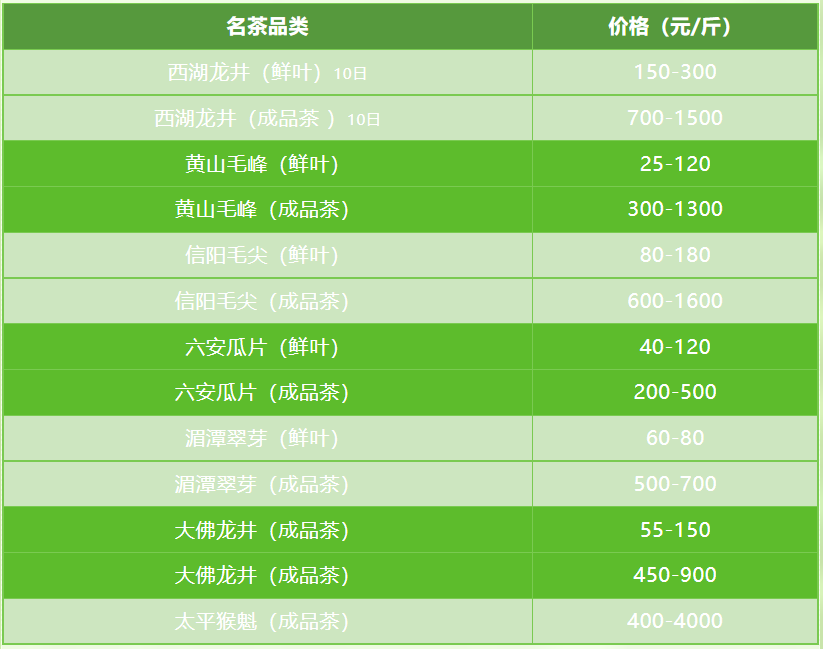 已开采名茶绿茶类(注:品质按一级标准)今日参考价格: