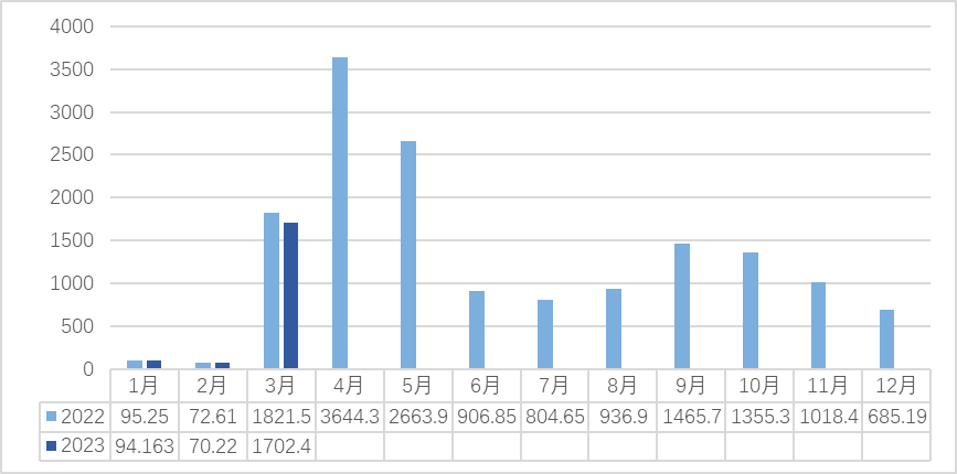 2022-2023(3月)新昌中国茶市交易量(吨)