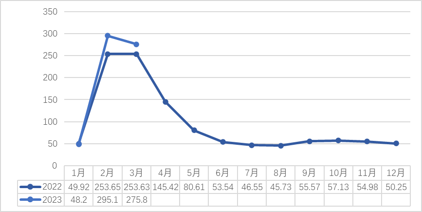 2022-2023(3月)中国茶业指数之地方名茶指数——新昌大佛龙井