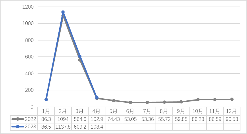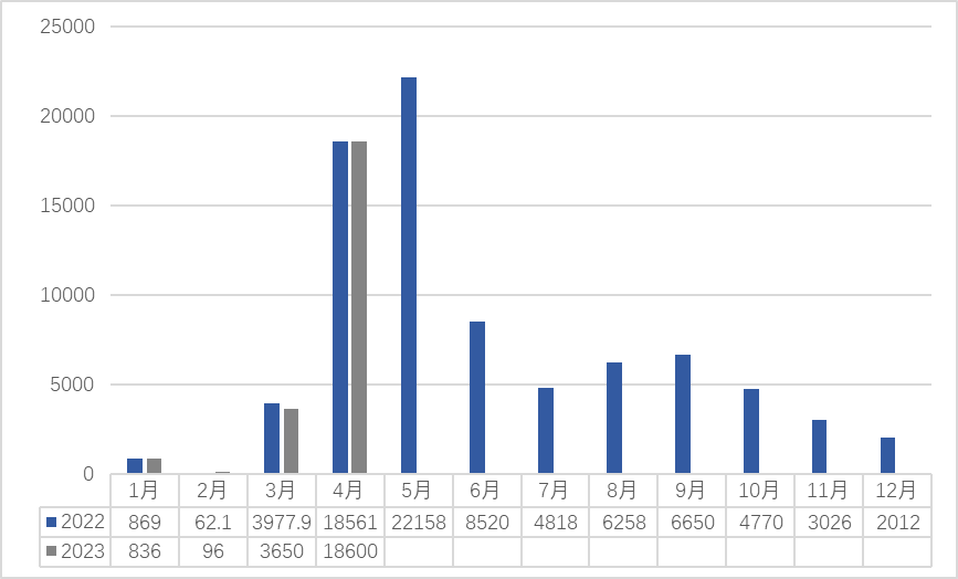 2022-2023(4月)浙南茶叶市场交易量(吨)