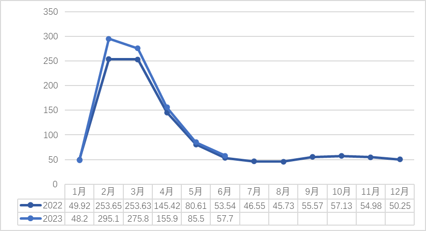 2022-2023(6月)新昌中国茶市交易量(吨)