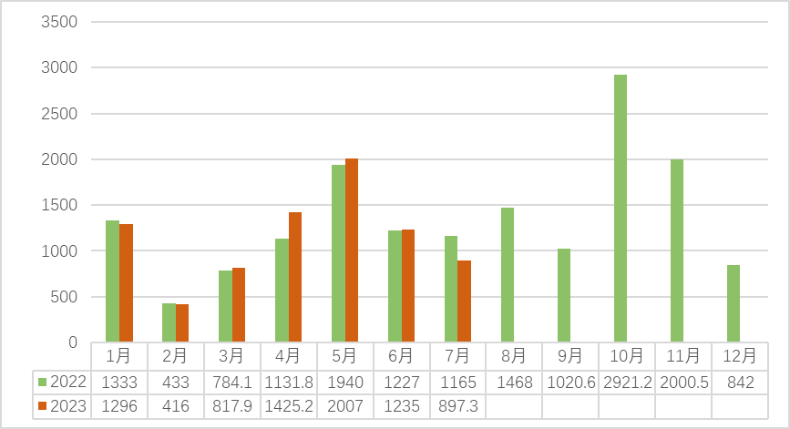 2022-2023(7月)安溪中国茶都铁观音交易量(吨)