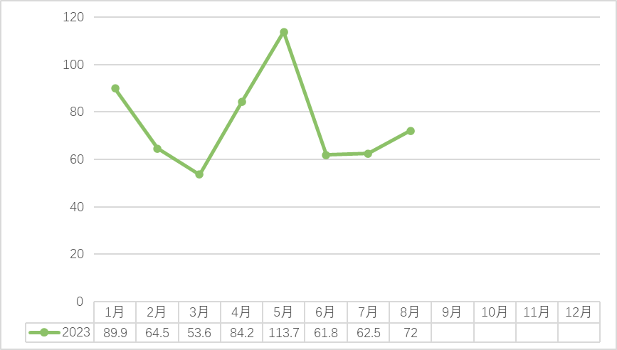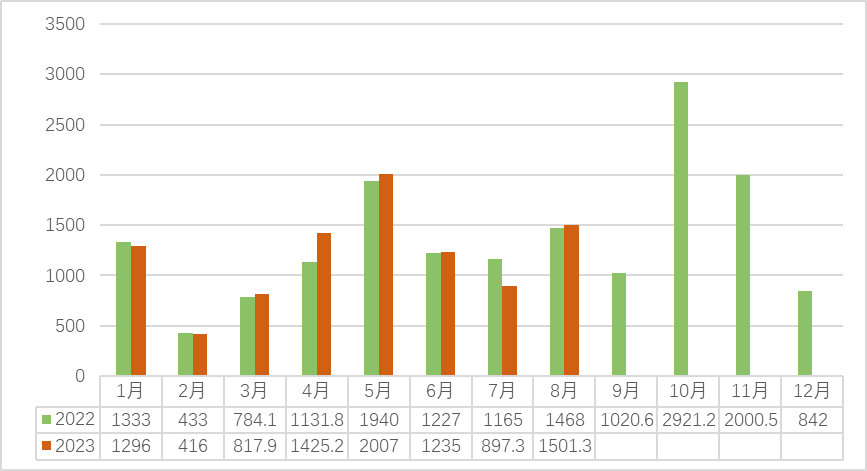 2022-2023(8月)安溪中国茶都铁观音交易量(吨)