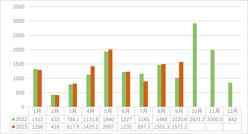 2022-2023(9月)安溪中国茶都铁观音交易量(吨)