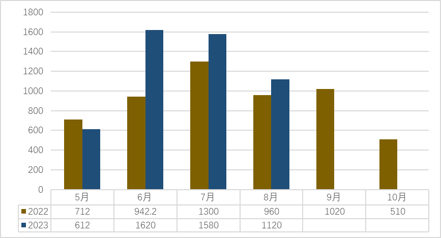2023年8月横州市茉莉花茶平均价格与比去年同期持平。一、2023年8月期间横州市顺利举办了第五届世界茉莉花大会新闻发布会,进一步促进了节庆与产业的密切联系,大力弘扬地方特色文化和茉莉花文化,扩大横州市知名度和影响力。二、茉莉鲜花受雨水天气影响,出花量下降,故茉莉鲜花产量下降。茉莉花茶用花量大,但供不应求,所以花茶价格偏高。