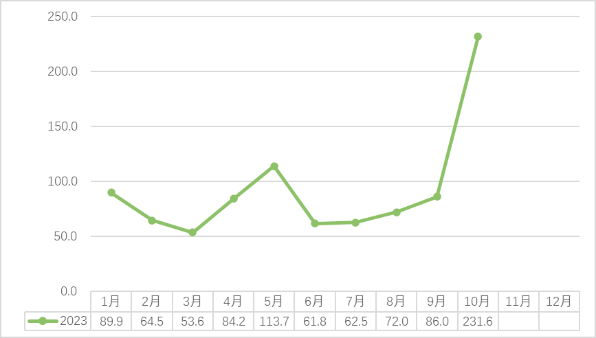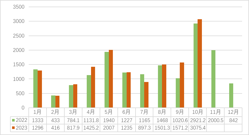 2022-2023(10月)安溪中国茶都铁观音交易量(吨)