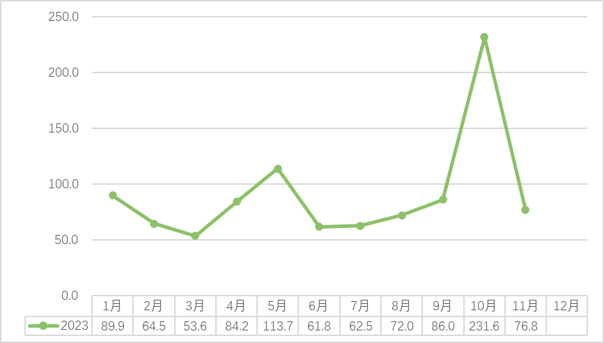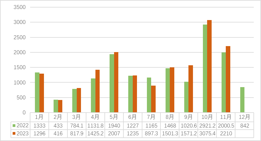 2022-2023(11月)安溪中国茶都铁观音交易量(吨)