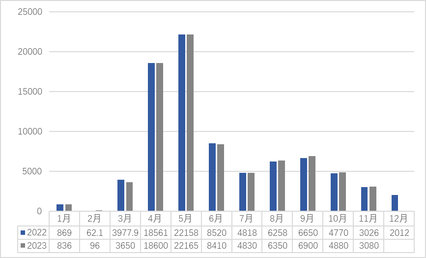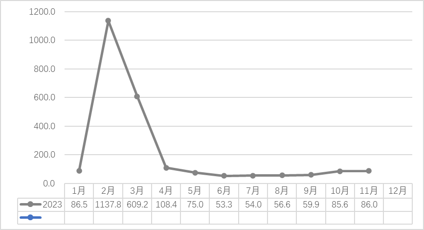 2022-2023(11月)浙南茶叶市场交易量(吨)