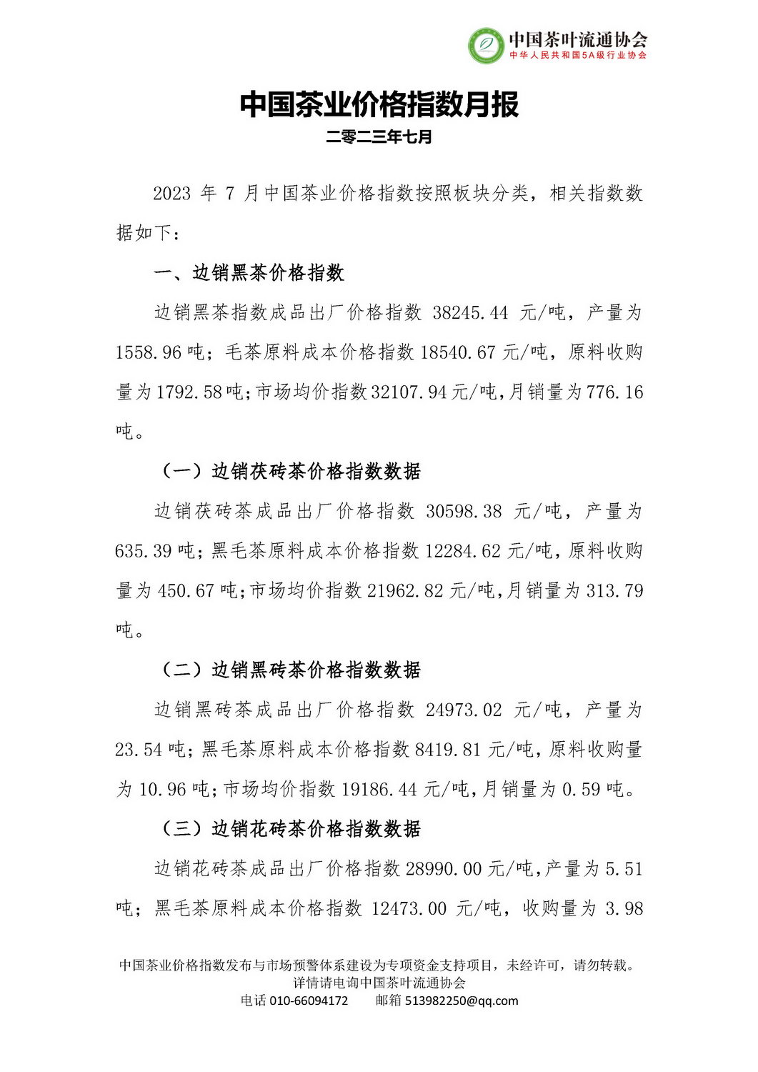 2023年07月中国茶业价格指数