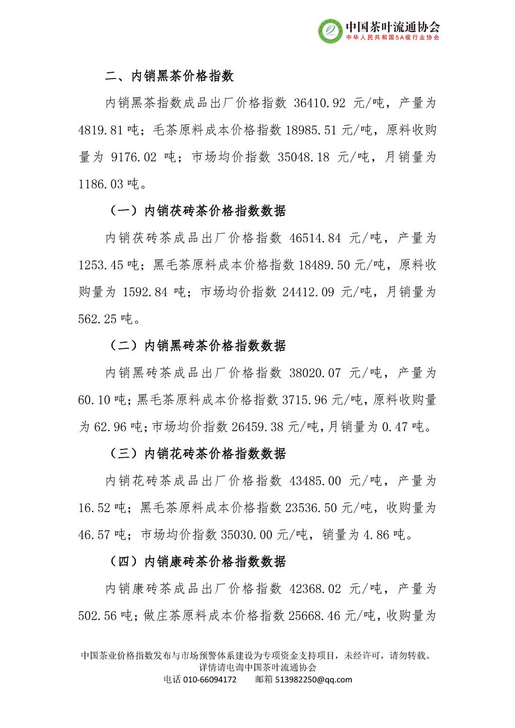 中国茶业价格指数