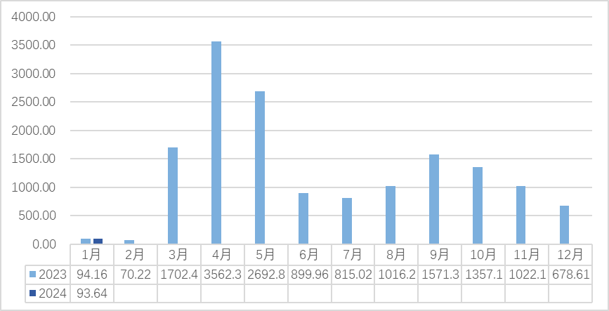 2023-2024(1月)新昌中国茶市交易量(吨)