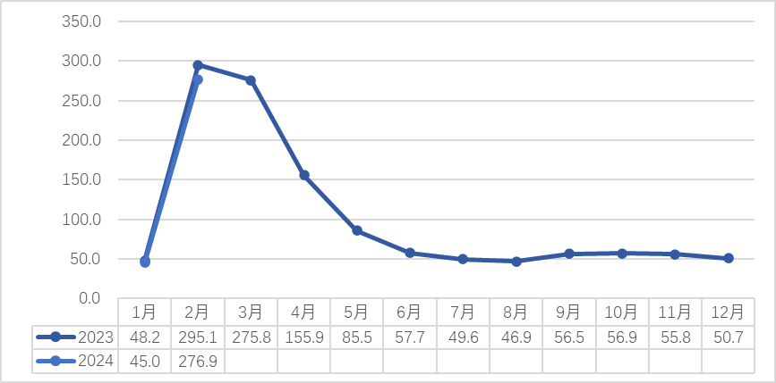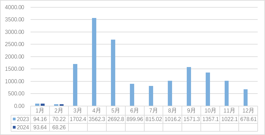 2023-2024(2月)新昌中国茶市交易量(吨)